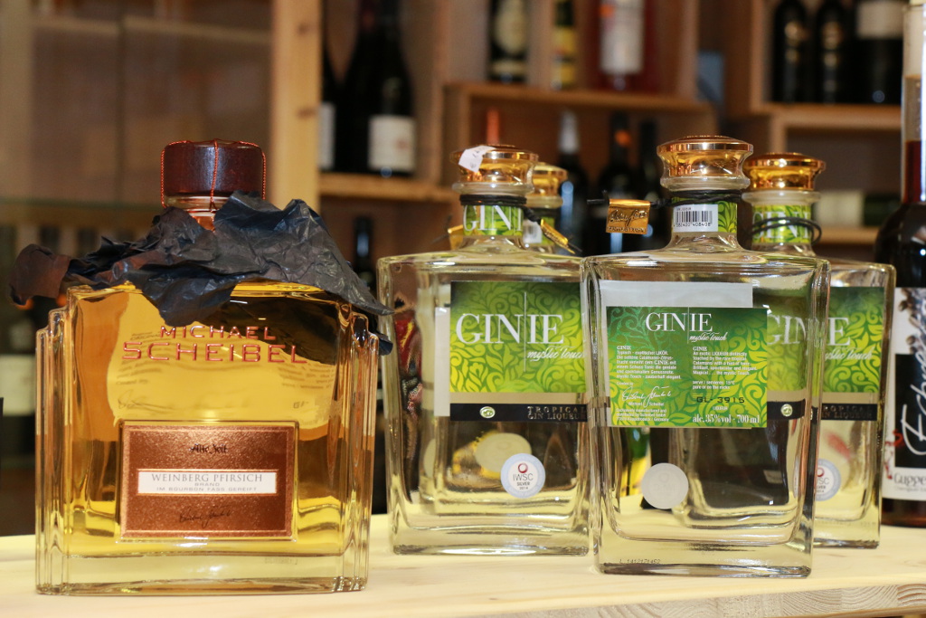 mit ihrem Aprikosenlikör, die Firma Scheibel mit ihrer alten Pflaume im Holzfass und die Firma Dirker mit ihrer Auslesebirne. Unser Sortiment wird durch ganz besondere Weine,